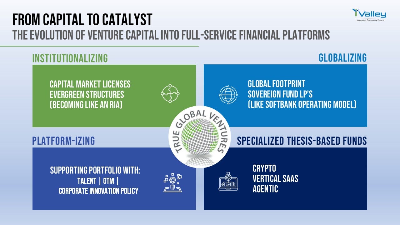 In this episode, I sat down with Beatrice Lion, CEO and General Partner at True Global Ventures (TGV), to explore how they are part of bigger trend in venture capital of is evolving into a full services financial services platform - multi-stage, multi-instrument, global, services platform with thesis based funds. TGV now operates with RIA-like flexibility, much like leading Silicon Valley firms (Sequoia, a16z, Lightspeed, General Catalyst, Bessemer, Founders Fund). This evolution in Venture capital gives the firms flexibility to hold non-traditional assets and manage capital in more evergreen/long-horizon ways—balanced by heavier compliance.