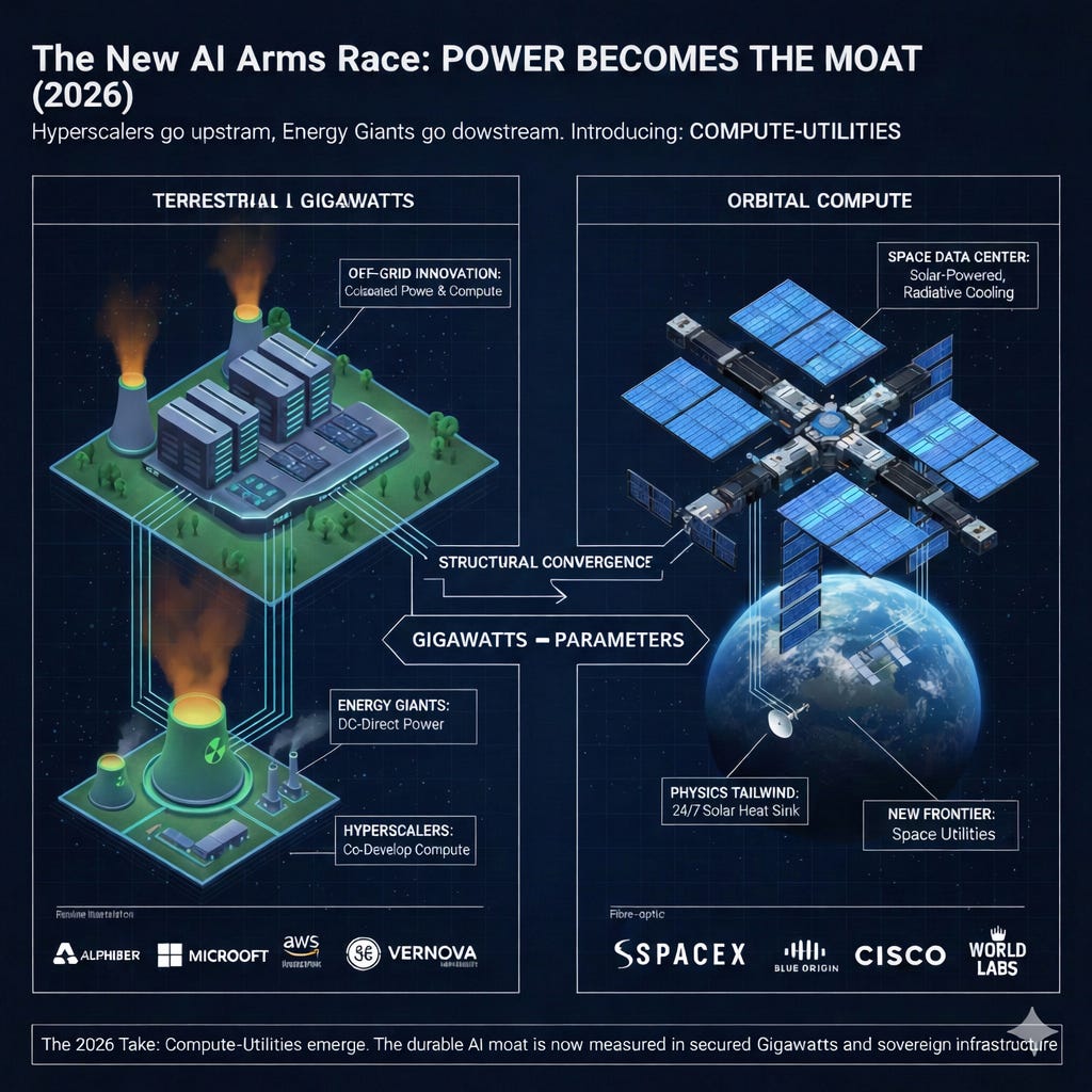 We’re heading toward a world of Compute-Utilities—where the new AI giants look increasingly like energy companies, and the energy incumbents increasingly look like data-center platform builders. In 2026, the durable moat is measured in gigawatts, not just parameters.